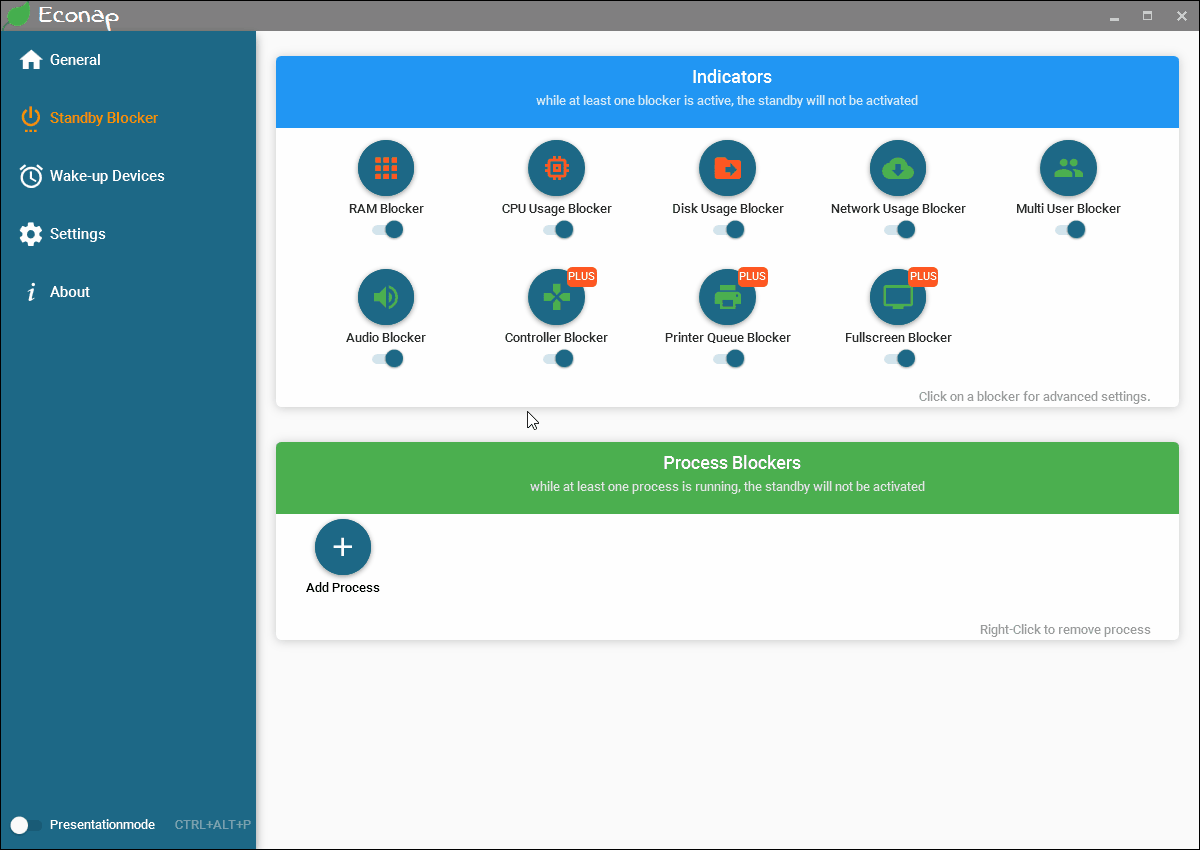 Econap also offers the possibility to set up process blockers to prevent the standby more explicitly.